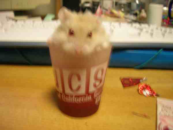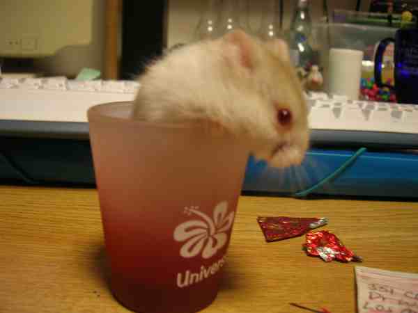 Our hamster, Spike Fuzzbutt. In a shot glass.